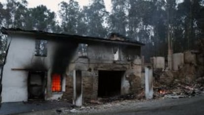 A la casa s’hi arriba a través de carreteres estretes, que ahir encara oferien un aspecte fantasmagòric de cendra, focus de fum aquí i allà i esquelets de pins. Pertany a Manuel Méndez, de 75 anys. “Tenia un gos que era un tros de pa; deu ser entre els enderrocs”, sospirava davant les cendres del que havia estat la seva llar des del 1952. “Vaig salvar la vida de miracle; perquè de sobte em vaig veure envoltat per les flames, gairebé no podia respirar; encara sort que se'm va acudir agafar el cotxe i baixar el terraplè fins a la meitat de la vall, en comptes d'anar cap a la carretera”, explica. Allà, es va esperar dissabte que el recollissin amb les finestres ben pujades.
