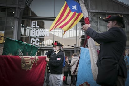 L'acte només ha durat uns minuts, durant els quals s'ha reclamat al govern municipal que El Born continuï sent un espai de commemoració al 1714 i s'ha criticat la proposta feta pel comissionat de Memòria Històrica de l'Ajuntament de Barcelona, Ricard Vinyes, que va anunciar un canvi en línia museística del recinte.