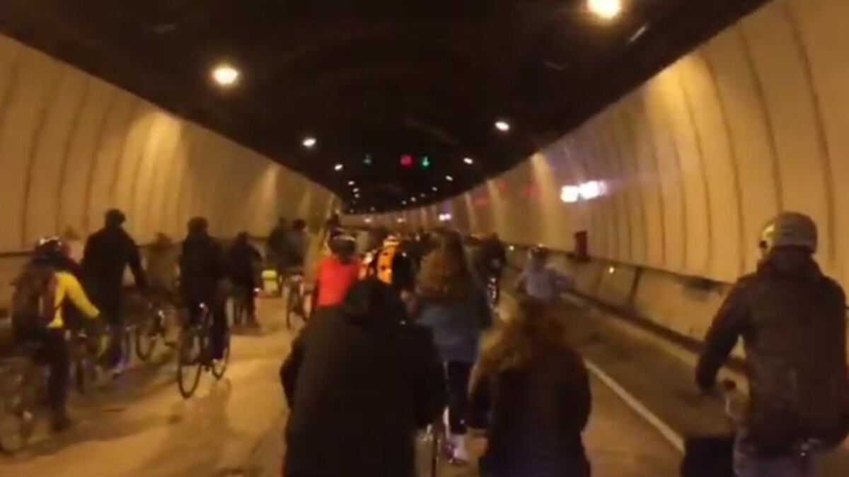 Els ciclistes de la Massa Crítica envaeixen el túnel de la Rovira