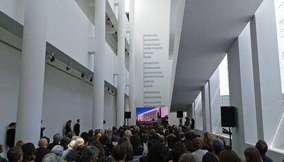 A l'atri no s'hi cabia, i a poc a poc s'afegien noves files de cadires. Durant l'acte, mitja dotzenes de persones van lloar la figura de Rodés. Ainhoa Grandes, la seva vídua, i presidenta de la fundació des del novembre, va parlar del Rodés filantrop, de la seva capacitat de lideratge i impulsor de nous projectes, destacant la seva capacitat d'implicar la societat civil. Persones com les que ahir no van voler perdre's l'homenatge, entre els quals es trobaven molts dels directors dels grans equipaments de Barcelona, germans del Macba, però també responsables culturals de la ciutat, a més d'un bon nombre d'empresaris “de tota la vida”, com deia una convidada. Per Grandes, que va definir el Macba com “el somni de Rodés”, una de les seves màximes obstinacions era que Barcelona no cedís al provincianisme”, una cosa que “havia aconseguit amb aquest museu”.