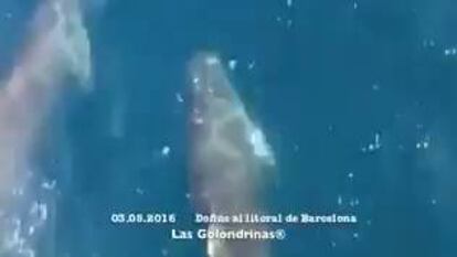 De tant en tant, els dofins s'apropen a la costa i, si troben un vaixell, li fan festes. Això els va passar fa pocs dies a un grup de turistes que feien un passeig amb golondrina a prop de la costa de Barcelona. I ells no van dubtar a treure les càmeres per gravar el moment en què els cetacis s'acosten al casc del vaixell i el segueixen una estona. No passa cada dia, però no és extraordinari veure dofins tan a prop al litoral de Barcelona.