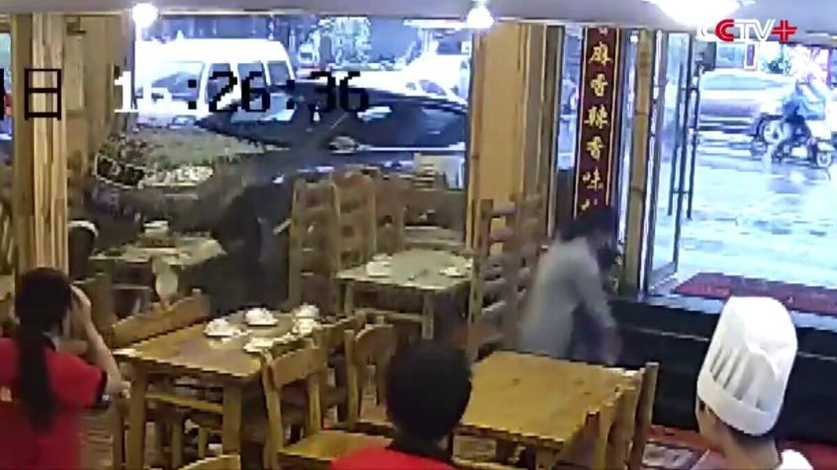 Un cotxe es va estavellar divendres passat contra un restaurant de Xangai, a la Xina, i va provocar que un vidre s'esmicolés sobre quatre clients que estaven menjant al local. Segons les declaracions de la policia a la cadena xinesa CCTV+, la conductora, que es troba en bon estat, es va equivocar de pedal en aparcar davant de l'establiment i va trepitjar l'accelerador en lloc del fre. Els clients només van patir ferides lleus, tot i que van haver de ser traslladats a l'hospital. Després d'investigar l'accident, la policia va necessitar una grua per traslladar el vehicle. Les imatges van ser captades per les càmeres de seguretat del comerç i mostren com prop que va estar l'accident a convertir-se en una tragèdia.