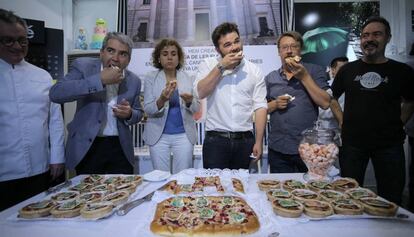 El número u per Esquerra Republicana al Congrés, Gabriel Rufián, ha arribat puntual a la presentació, a les 10 del matí, per devorar-se a si mateix. Ell, diu, no és de ballar, com el socialista Miquel Iceta —o com Juan Carlos Girauta, de Ciutadans—, però sí de bon paladar. Rufián ha comentat amb els seus companys d'acte que "estava molt bo", el tros no pas petit que s'ha menjat. En el moment del tast l'acompanyaven Xavier Domènech, d'En Comú Podem; Dolors Montserrat, la número quatre del PP —el ministre Jorge Fernández Díaz tenia una entrevista—; i Francesc Homs, candidat convergent i Quico per als amics. Tots han lloat la coca i la feina del pastisser.