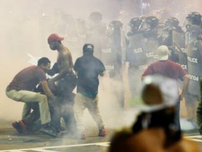 No obstant això, passada la mitjanit, centenars de persones seguien la marxa pel centre de la ciutat, després d'hores de manifestacions que van ser àmpliament pacífiques, encara que la policia va llançar en alguns moments gas lacrimogen per dispersar diversos grups, segons l'agencia AFP. Les autoritats van indicar que “no hi ha plans” per imposar per la força el toc de queda si les marxes continuaven en calma. El capità Mike Campagna va dir a la cadena CNN que el toc de queda està considerat com una eina per fer servir si és necessari, però va manifestar la seva esperança que això no arribi a succeir.