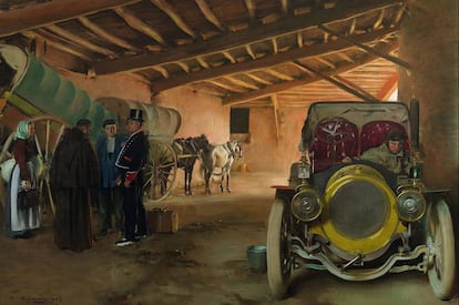 Va ser en un viatge a París, el març del 1906, quan en una parada obligatòria del camí a les cotxeres de Moià, el pintor Ramon Casas va fer una fotografia: vells carruatges tirats per cavalls en un rafal desfet. La imatge va ser la que després li va servir per fer un gran llenç: a un costat del rafal va reflectir aquells cavalls i els carruatges amb unes persones dempeus que representaven la societat més tradicional –una dona amb vestidures fins als peus i mocador, un capellà, un mosso i un mosso d’esquadra!– i a l'altre costat, un flamant cotxe –un Delaunay-Belleville– sota el mateix sostre amb una llum que inunda el fons de l'escena. La cotxera és el nom d'aquesta tela que representa la modernitat i l'antic, dos mons amb els quals va conviure l'artista, un dels grans del modernisme, que es pot contemplar a l'exposició Ramon Casas. La mirada moderna, a la galeria Gothsland de Barcelona. I comprar, si es disposa d'uns 500.000 euros.