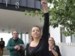Sota el lema “Per la democràcia”, la concentració ha tingut la presència de tots els polítics imputats des de Carme Forcadell, presidenta del Parlament; l'expresident de la Generalitat Artur Mas i els seus tres exconsellers —Joana Ortega, Irene Rigau i Francesc Homs— així com els dos regidors de la CUP acusats de desobediència i delicte de sedició. L'acte ha apel·lat constantment a la defensa de la democràcia i al fet que els polítics afectats no van fer altra cosa que acatar la voluntat popular i a la vulneració de drets fonamentals que està cometent al seu parer el Tribunal Constitucional. Els manifestants han corejat crits d'"Independència" i proclames com "Fora la justícia espanyola".