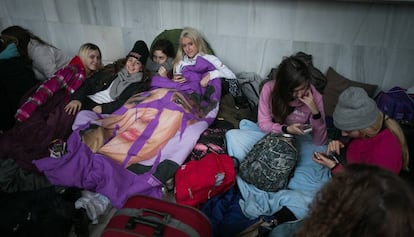 Desenes de belivers (seguidors del cantant Justin Bieber) fa dies (alguns fins a setmanes) que acampen a les portes del Palau de Sant Jordi de Barcelona, on el cantant actuarà aquest dimarts davant milers de persones. La majoria de seguidors que fan cua malgrat el fred i la pluja, són noies d'entre 14 i 20 anys.