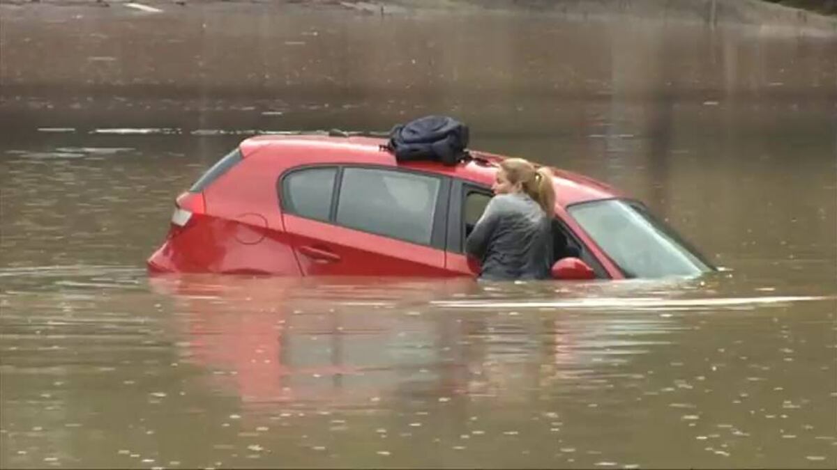 La conductora del turisme va estar gairebé mitja hora al sostre del cotxe. El cotxe es va enfonsar en menys d'un minut. La dona va ser finalment rescatada a coll pels bombers.
