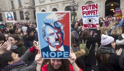 Un miler de dones es van manifestar a Barcelona aquest dissabte per mostrar el seu rebuig al nou president dels Estats Units, Donald Trump, i per recolzar des d'Europa la manifestació que organitzacions feministes i de drets humans havien convocat a Washington. La manifestació, que va discórrer sense incidents per la Via Laietana, va comptar amb la presència de dones nord-americanes que resideixen a Catalunya. Les manifestants van corejar consignes contra Trump i en defensa dels drets i llibertats que veuen en risc amb l'arribada del nou president, la investidura del qual es va celebrar divendres passat.