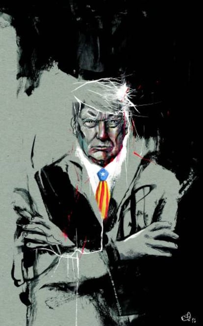 L'escriptor Francesc Puigpelat ha publicat aquest 2017 un article a Nació Digital defensant un acostament de la Generalitat a Trump per aconseguir el seu suport a la independència: “Donald Trump representa una oportunitat molt interessant per al procés català. Més enllà de les mesures anti-immigració, [...] ¿no li interessaria a Trump donar suport a la independència de Catalunya, com a falca i com a element desestabilitzador de la Unió Europea? La pregunta no és ociosa. Crec que cal pensar-hi una estona. I crec que Romeva ho hauria de considerar. Catalunya no és a l’agenda de Trump, però seria interessant que algú l’hi presentés. Podríem endur-nos la sorpresa que li interessés donar suport al procés per crear mala maror a Madrid, París, Brussel·les i Berlín. I, si fos així, bingo!”