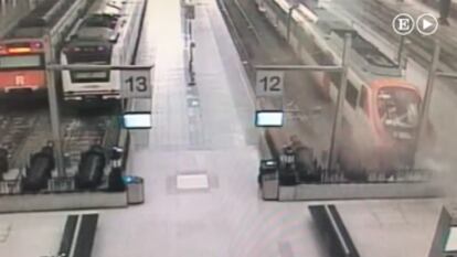 Les càmeres de seguretat van recollir el moment del xoc del comboi amb el topall del final de la via