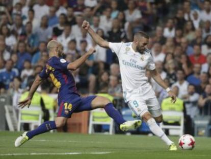 Piqué va tenir una mala nit al Bernabéu. El defensa es va haver de retirar del camp per molèsties al pubis (es va col·locar gel en aquesta zona quan es va asseure a la banqueta) i va patir les burles de l'afició del Madrid. “Es queda, es queda”, va cantar el Bernabéu, en referència a la foto que va publicar el central a Instagram amb Neymar. Luis Suárez també es va retirar de Chamartín amb molèsties al genoll dret.