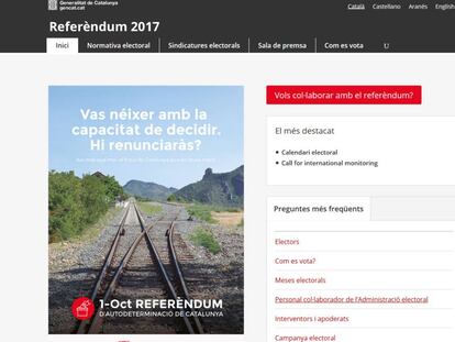 El primer web del referèndum va ser tancat per ordre judicial el passat dia 13, sis dies després de publicar-se. Immediatament Puigdemont va fer públiques dues adreces alternatives, una allotjada al Regne Unit i una altra a Luxemburg. La primera, com que estava registrada sota un domini gestionat per la Fundació puntCat, va ser tancada per ordre judicial executada per la Guàrdia Civil. La segona només va poder ser bloquejada per part dels operadors de telefonia, també per ordre judicial. Al cap de poca estona van aparèixer trucs a internet per esquivar la prohibició. El web del cens mostra els mateixos continguts dels webs originals però, a més a més, un cercador que permet trobar on es podrà votar el pròxim 1 d'octubre.
