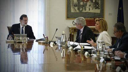 Després del Consell de Ministres extraordinari, el president del Govern, Mariano Rajoy, ha anunciat a dos quarts de dues de la tarda les mesures concretes amb les quals s'engegarà l'article 155. La seva aplicació, segons ha explicat el president, es basa en quatre objectius del Govern: tornar a la legalitat, recuperar la normalitat i la convivència, continuar amb la recuperació econòmica i celebrar eleccions.