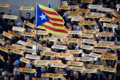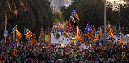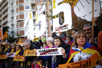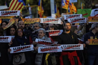 Milers de persones demanen la llibertat dels presidents de l ANC i Òmnium Cultural, Jordi Sànchez i Jordi Cuixart, i dels vuit consellers del Govern de Catalunya destituït que romanen a la presó