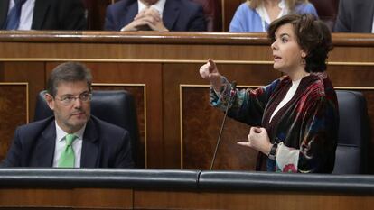 Amb Mariano Rajoy a Costa d'Ivori, la vicepresidenta ha liderat la sessió de control al Govern central d'avui dimecres al Congrés dels Diputats. Ha estat el portaveu d'En Comú Podem, Xavier Domènech, qui ha fet una pregunta que apareix, de fet, en els argumentaris dels partits sobiranistes. Obrirà el Govern central una negociació bilateral amb el Govern català que sorgeixi del 21-D? La vicepresidenta espanyola no li ha donat motius a Domènech, cap de cartell del seu partit a Catalunya, per tenir cap esperança.