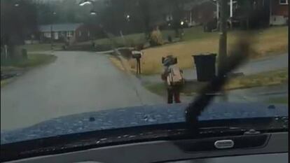 Un home de Virgínia fa que el seu fill vagi corrents a l'escola després de ser expulsat de la ruta. El seu escarment rep aplaudiments i també acusacions de maltractament infantil