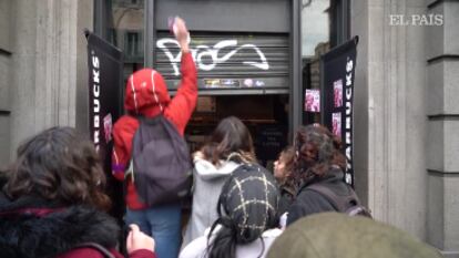 Diversos grups d’activistes s’han assegut a la Gran Via per alterar el trànsit. Un grup ho ha fet a la plaça de les Glòries, un dels principals accessos a la ciutat, de manera que han quedat afectats els dos sentits de la marxa. A l’altre extrem, un altre grup ha fet el mateix a l’altura de La Campana. Ja una mica més tard, una trentena de dones s’ha assegut a la confluència entre la Gran Via i el carrer d’Urgell, la qual cosa ha obligat a desviar el trànsit pel carrer de Sepúlveda, que ha quedat col·lapsat. Agents antidisturbis dels Mossos han desallotjat finalment les activistes amb algunes empentes, la qual cosa ha provocat els únics moments de tensió que s’han viscut aquest matí.