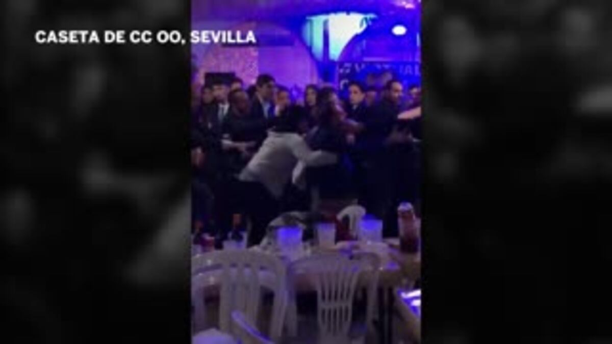 Dos homes han protagonitzat una baralla a cops de cadira a la caseta de Comissions Obreres (CCOO) a la Feria de Abril de Sevilla dissabte a la matinada. En un vídeo, difós a les xarxes socials, es pot veure com un dels homes colpeja amb una cadira de plàstic un altre individu, subjectat per altres persones que volen aturar la baralla. Uns segons després, els protagonistes comencen a empenye's i a donar-se cops de puny mentre la resta d'assistents intenta aturar l'enfrontament.