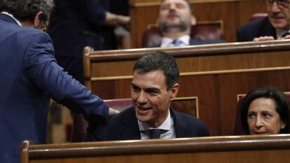 Ara és aquesta l'aritmètica que el col·loca a la presidència, però la direcció de Sánchez afirma que no ha negociat res amb aquests grups polítics. Sánchez els ha advertit des de la tribuna que el seu Govern complirà i farà complir la Constitució, i que no admet el dret d'autodeterminació per a Catalunya. Malgrat tot, dirigents històrics del partit veuen amb preocupació les condicions en les quals accedeix a la presidència.