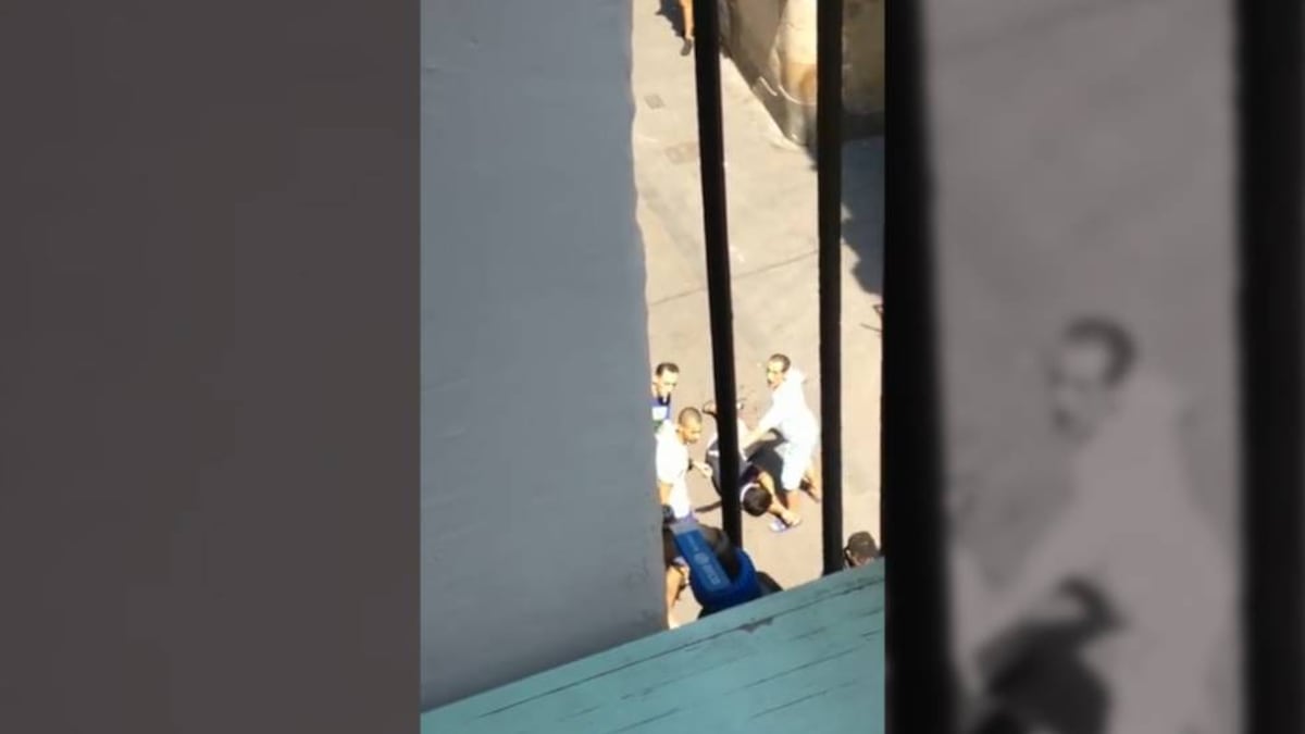 En un vídeo sobre aquest succés gravat per un veí des d'una balconada i difós a les xarxes socials es pot observar com l'agressor colpeja dues vegades la víctima amb un pal mentre encara sosté el ganivet a la mà i exclama en diversos moments: "Crideu a la policia!". Algunes persones intenten evitar que l'agressor segueixi colpejant la víctima, encara que pot observar-se que un altre home aconsegueix pegar una puntada al cap del ferit.