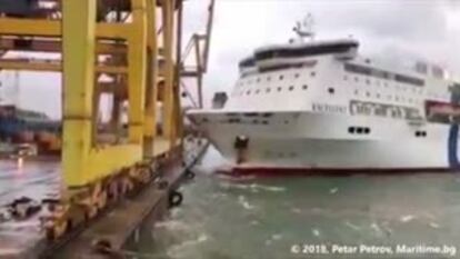 Per causes que es desconeixen, el vaixell de càrrega Excellent, de la naviliera italiana Grandi Navi Veloci (GNV), ha topat, potser a causa del mal temps, contra una de les grues de càrrega. Com a conseqüència de l'impacte, la infraestructura ha caigut sobre quatre contenidors i ha provocat un aparatós incendi.