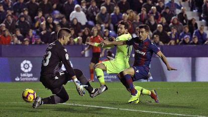 Boateng no va parar de buscar l'esquena de la defensa del Barça fins a rematar al travesser de Ter Stegen. El Llevant no la va encertar i Messi no va perdonar. El 10 va llegir el partit amb la precisió d'un cirurgià, excel·lent en la pressió i la passada a Luis Suárez en el 0-1 i terminal en el desmarcatge i la rematada en el 0-2. La línia de passada ha de ser molt neta per salvar la pressió blaugrana i eludir Busquets, decisiu en totes dues jugades, activat quan va veure la feblesa defensiva del Llevant. La voracitat de Messi va penalitzar les molt bones intencions de l'equip de Paco López i va avalar la proposta de Valverde. Més que de jugar, es tractava de guanyar.
