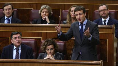 El líder del PP, Pablo Casado, ha qüestionat l'estratègia de diàleg del president del Govern espanyol, Pedro Sánchez, sobre Catalunya, "implorant" una reunió amb el president de la Generalitat, Quim Torra, quan aquest està "atacant el cor de l'Estat" i buscant "un vessament de sang" i "una guerra civil". Sánchez ha lamentat el to "autoritari" de Casado en fer ara l'oposició i en apropiar-se "la Constitució de tots" i ha garantit la seguretat i l'ordre públic a Catalunya.