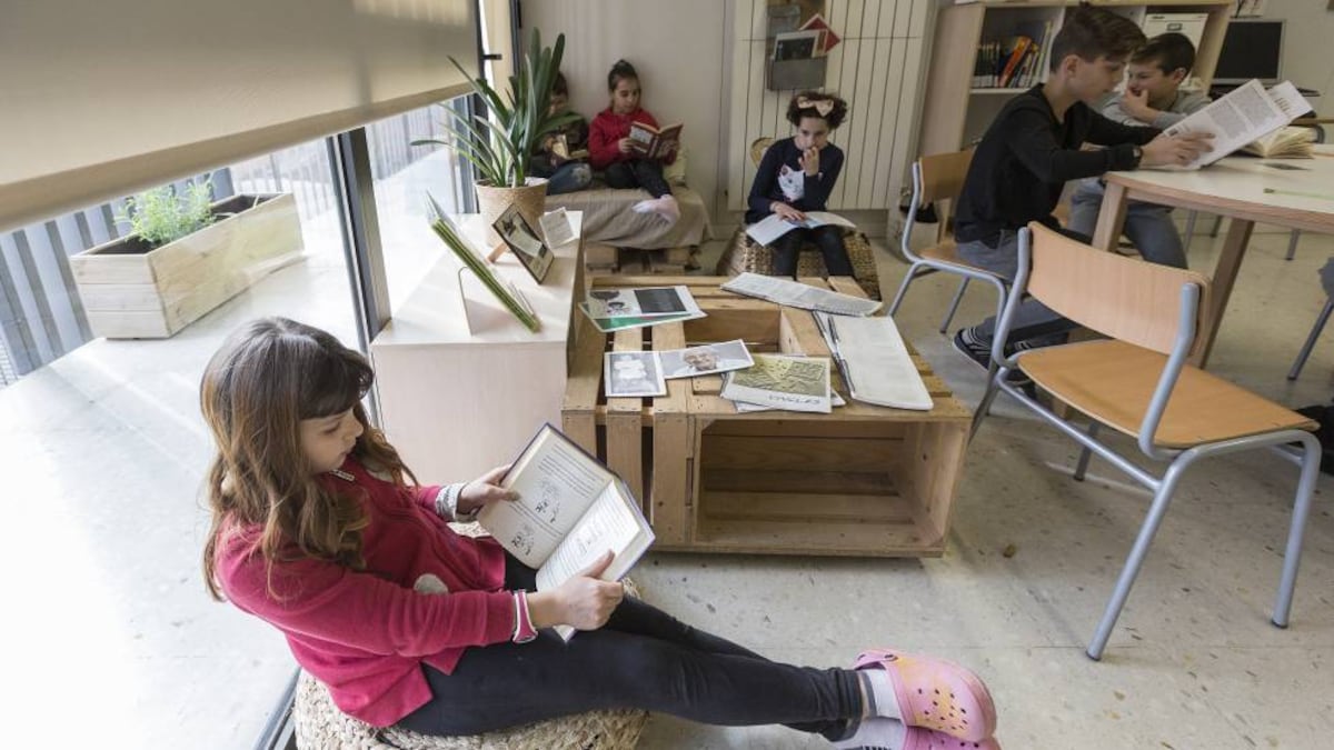 És l’hora de la lectura a l’escola dels Encants de Barcelona. Hi dediquen 15 minuts diaris. Els alumnes s’escampen per totes les instal·lacions: uns s’asseuen a les taules, d’altres a la terrassa, d’altres al terra dels passadissos. Cadascun tria el llibre i l’espai on vol llegir. Es respira un aire de llibertat i benestar. L’entrada al matí i la sortida a la tarda es fa amb música relaxant o “de bon rotllo” (aquesta setmana toca cantautors com Lluís Llach o Raimon). Els alumnes porten sabatilles d’estar per casa. Les sabates o les vambes es deixen en unes prestatgeries a l’entrada. “Tot genera benestar. Si estàs bé pots connectar bé amb l’aprenentatge. Darrere de molts fracassos escolars hi ha nens que no són feliços”, destaca Agnès Barba, directora del centre.