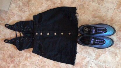 La jove portava posada una peça de licra escotada, una faldilla i vambes