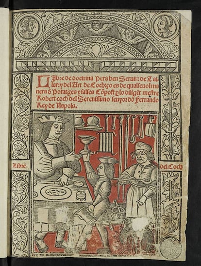 El Llibre del coc, primer llibre de cuina imprès en català, està dedicat a Ferran I, rei de Nàpols (1458-1494). Malgrat ser de 1520, no reflecteix productes del nou continent i algunes receptes semblen extretes del Llibre de Sent Soví, primer receptari conegut en català, manuscrit anònim de la primera meitat del XIV i del qual van sortir, al seu torn, plats que conformarien el Llibre d'aparellar de menjar, l'altre gran precedent bibliogràfic (1351-1400) del qual es mostra un facsímil.