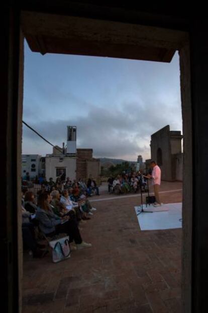 És 17 de maig del 2022, cap a quarts de vuit del vespre, i el cel encara brilla. Falta poc més d’un mes perquè la ciutat caigui en la primera onada de calor de l’any, però a peu de carrer ja se sent la xafogor. Al terrat d’una de les tradicionals Cases d’en Xifré, davant del passeig d’Isabel II, a prop del port de Barcelona, es respira un aire fresc. La història oral diu que els barcelonins també s’enfilaven a la ciutat aèria per aquest motiu: per gaudir dels corrents d’aire. L’equip de Coincidències, que es prepara per encetar la temporada de Terrats en Cultura (s’allargarà fins al 26 de setembre, quan tanquin amb un espectacle amb vistes al piromusical de La Mercè), ultima els detalls. Aquesta edició començarà amb una lectura de poemes. És l’Any Ferrater, i l’actor Pere Arquillué es disposa a entonar en uns minuts una interpretació personal de Les dones i els dies, acompanyat per la guitarra de Toni Ubach.