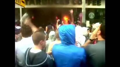 Un grupo de personas irrumpen en el café y tras asaltarlo lanzan los productos a la calle
