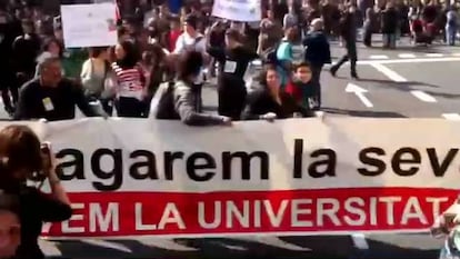Decenas de miles de estudiantes y profesores —60.000 según los convocantes, 25.000 para la Guardia Urbana— tomaron parte en la marcha, que arrancó en la plaza de la Universitat y terminó en el mismo lugar tras un recorrido circular que colapsó el tráfico en el Eixample. La manifestación se nutrió también de frentes formados por la comunidad educativa, a la que se añadió la sanitaria, llegados del resto de la ciudad. Uno de los ramales procedía del campus del Raval de la UB y otro partió de la Zona Universitaria, donde estudiantes de la UPC y la UB cortaron la Diagonal. Un grupo de manifestante llegó hasta la emisora de la cadena SER, en la calle de Casp, para interrumpir la programación y leer un manifiesto.