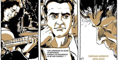 La obviedad de Camarón ha sido asumida por Kenny Ruiz, quien centra sus dibujos en el emblemático disco La leyenda del tiempo. Carlos Hernández recuerda un momento muy especial de Enrique Morente, cuando en 1996, con motivo de la presentación de la recién restaurada guitarra de Federico García Lorca, el cantaor inauguró una serie de conciertos en la granadina Huerta de San Vicente. Pacheco no quiso desvelar ningún detalle de Bambino, su nuevo superhéroe, hasta que no se publique el nuevo álbum.