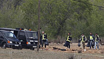 Francisco García Jover, jefe de guardia del servicio de urgencias médicas de la Comunidad de Madrid (Summa), ha explicado que la alerta se ha recibido a las 10.45, hora a la que se ha activado el dispositivo de emergencias. La primera en llegar ha sido una UVI móvil de Alcalá, que se ha encontrado con "restos humanos mezclados con restos mecánicos". No había "estructuras óseas ni corporales reconocibles" y estaban "calcinados", al igual que el terreno donde se encuentra el aparato.
