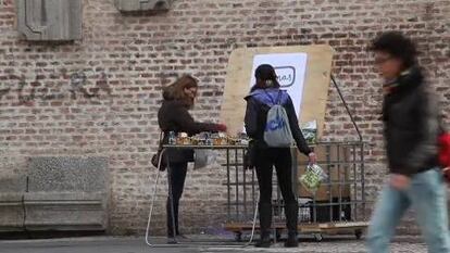 Un carrito recorre el mercado San Fernando de Lavapiés. Es un artilugio cuadrado, como un cajón enjaulado, del que surge una mesa plegable donde se colocan los alimentos que los comerciantes les ceden. "En lugar de desecharlos se aprovechan", opina Pepe, que regenta una frutería. “El problema es que si alguien se intoxica, Sanidad nos puede cerrar el chiringuito”. Ese es el principal escollo que sortear.