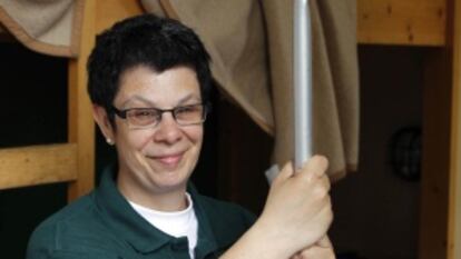 Mireia de la Aldea trabaja en el albergue InOut, en Vallvidrera (Vallès Occidental), cerca de Barcelona, casi desde que abrió, hace siete años, en 2005. Es un establecimiento donde la mayoría de los trabajadores son discapacitados. "Trabajadores que necesitan protección", prefieren llamarlo en la entidad Icària Iniciatives Socials, a la que pertenece el albergue. De la Aldea tiene 35 años, una discapacidad intelectual y se encarga de la limpieza: dormitorios, baños, espacios comunes. Le encanta su trabajo: "Antes había trabajado en serigrafía y estaba bien, pero esto me gusta más, por el contacto con los clientes, que vienen de todo el mundo (Francia, Italia e incluso China) y porque estamos en plena naturaleza, en medio del bosque". El InOut es un albergue urbano pero está a 15 minutos de Barcelona en tren, en Collserola.