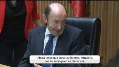 En el vídeo, emitido por Cuatro y Telecinco, se ve a Rubalcaba hablando con el secretario general del Grupo Socialista, Eduardo Madina, aludiendo a una información sobre una reunión de la Ejecutiva Federal y diciendo que tendrá que "echar al filtrador o filtradora, que "se sabe quien es". Según el líder del PSOE, la identidad del filtrador se ve en la propia información y desvela de quién cree que se trata. "Maru", responde a Madina.