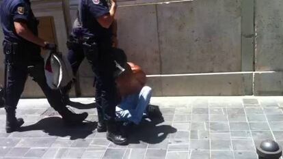 Un detenido en la protesta de los indignados ante Bankia en Valencia
