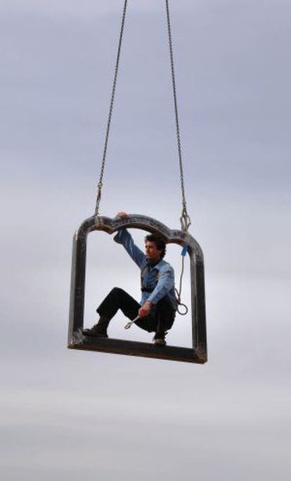 La obra de este madrileño de 41 años, que desde 2008 vive en Berlín sólo termina de comprenderse si se tiene en cuenta que transcurre (que es, en realidad) en el espacio público. Esa particularidad que para él deviene en deber. “A partir de que pones la pieza es pública, tu te quitas. Uno toma el espacio prestado. y hay que ser tremendamente respetuoso con dejarlo como era, porque nada es para siempre. Las cosas tienen que ocupar el espacio de la manera más liviana posible”, afirma. Poético, completa: “Intento envolver el aire”. Y en ese plan, hace que incluso el ahorro de energía entre en escena. “Me interesa que cuando uno coloca una pieza a la vista del publico pase el examen estético, pero también el de la eficiencia”, concluye.