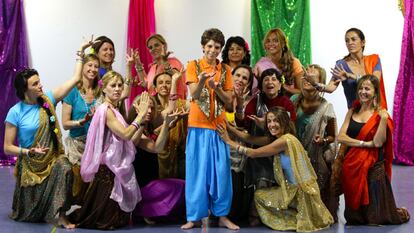 “Y ellas se lo pasan muy bien conmigo”. Gonzalo Serra, un niño de 13 años con parálisis cerebral es delgado e inmenso a la vez. Cuando se le pregunta por el grupo de bollychurias que su madre fundó sin proponérselo, no duda en presumir de las pasiones que sabe que despierta. Él fue la razón por la que Mariquilla López, la mamá, decidió montar unas clases de baile en su casa, a las que invitó a familiares y amigos. Ahora son un grupo consolidado de Bollywood —danza moderna de India—, con 13 bailarinas y Gonzalo como única estrella masculina. Hoy se estrenan ante el público con una gala en beneficio de la Fundación Bobath, especializada en personas con la misma discapacidad del pequeño.