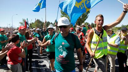 Cientos de personas aclaman a los mineros a su entrada a Collado Villalba La marcha llega hoy a Aravaca, para seguir la noche del martes a la capital