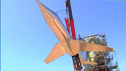 El aeropuerto de Castellón aún está a la espera de abrir sus pistas a los aviones, pero este martes el artista Juan Ripollés remató con un avión de aluminio la colosal escultura en homenaje al expresidente del PP castellonense, Carlos Fabra, que este le encargó personalmente en 2010 con un presupuesto de 300.000 euros más IVA, a pagar por el Gobierno valenciano. Ripollés aseguró este martes, a los pies de la obra, que el coste total ha sido de casi medio millón. “Tengo que poner 127.000 euros de mi bolsillo”, dijo. El hombre avión, como el artista ha denominado su escultura, mide 24 metros de altura y 18 de ancho y pesa 33 toneladas.