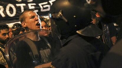 Los antidisturbios cargaron contra los manifestantes en la carrera de San Jerónimo, cuando intentaron traspasar las vallas que rodean estos días la Cámara baja. Luego, los disturbios se extendieron con violencia por el entorno de la plaza de Santa Ana. La policía disparó salvas para intimidar a los concentrados y cargó contra ellos; los manifestantes les lanzaron botellas y quemaron contenedores a lo largo de varias calles.