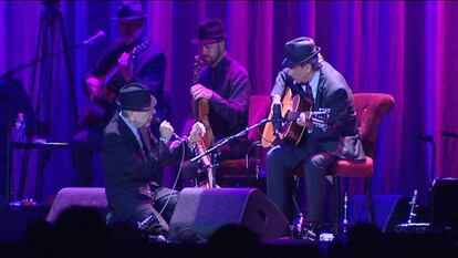 Leonardo ha incrementado su repertorio, pero no deja de visitar, a sus 78 inviernos, tantas páginas que le aseguran el pasaporte a la eternidad.“Me duelen los lugares con los que solía jugar”, musita en Tower of song, la jaculatoria que abre la segunda mitad. Y a partir de ahí, una cascada de palabras mayores. Suzanne, Hallelujah, First we take Manhattan. A veces su voz de barítono parece no provenir del aparato fonador, sino de las mismas entrañas. So long Marianne, Famous blue raincoat, Take this waltz. Es cierto: alguien que ama a Lorca solo puede albergar belleza en su corazón. Gracias por darnos buena vida, Leonardo.