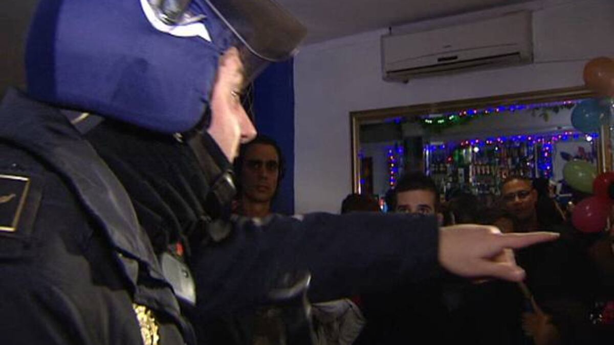 La noche transcurre tranquila y el control junto a la calle de Hernani está dando poco rendimiento, por lo que los agentes deciden afrontar un bar de copas de los bajos de Azca. La forma de actuar es casi rutinaria. Primero entran dos agentes de paisano de Tetuán para evitar que alguien entre y se pueda deshacer de papelinas de droga. Después, irrumpen los uniformados de la UPR y de la comisaría (unos 30 en total) que obligan a parar la música y a encender las luces. En este caso se ha elegido el Tokio, en el que hay un centenar de suramericanos. Los policías cachean a todos los presentes y les piden sus carnés. También les acompañan agentes de la Brigada de Extranjería y Documentación, por si algún cliente está de manera irregular en España.