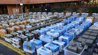 El grueso de la operación se desarrolló en las naves industriales donde se decomisaron 8.500 kilos de hachís. El estupefaciente fue expuesto ayer por la mañana en el aparcamiento de la Jefatura Superior de Policía de Madrid, adonde acudieron Ignacio Coisidó y la delegada del Gobierno en Madrid, Cristina Cifuentes. Los agentes tardaron varias horas en preparar las 11 toneladas para su exhibición.