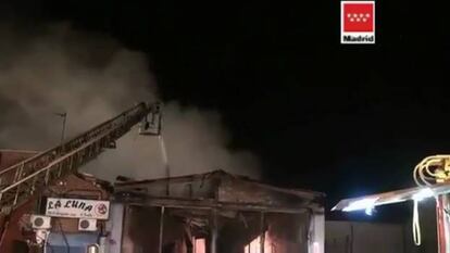 Un incendio ha destrozado una nave industrial de Humanes que almacenaba ropa y complementos de bebé. Los servicios de emergencias no recibieron la llamada hasta la 1:40 horas de la madrugada. Cuando llegaron los bomberos, las llamas ya habían devorado la construcción. La cubierta acabó desplomándose a causa de las llamas que se extendían a lo largo de los 2.000 metros cuadrados del almacen. Las construcciones anexas no han sufrido grandes daños. Ahora se intenta determinar el origen del fuego.