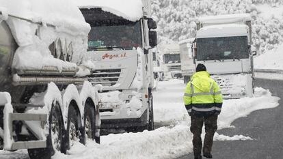 Carreteras intransitables, camiones cruzados en la vía, municipios sin electricidad y niños sin clase. Es el rastro que ha dejado en Castellón la intensa nevada que comenzó en la madrugada del jueves y continuó durante toda la jornada. Y también por la noche, cuando quedaron atrapados en la carretera A-23 en el término de Barracas decenas de camiones y coches. La acumulación de nieve obligó a movilizar a la Unidad Militar de Emergencias (UME), Guardia Civil y Cruz Roja para desbloquear la vía.
